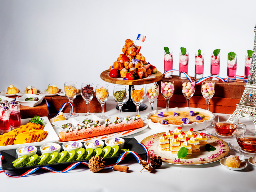 併設の「スイーツ尽くし」エリアも、フェア期間限定でフランスをテーマにアップデート。